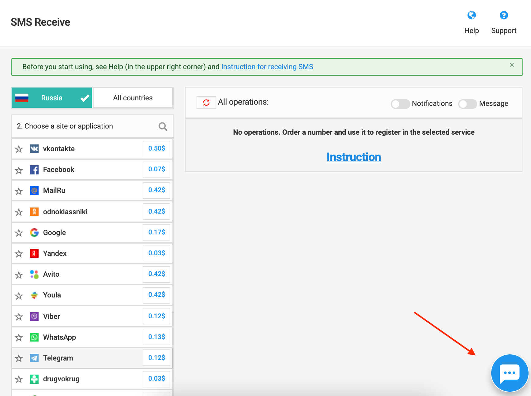 1. Go to the support chat (in the bottom right corner)