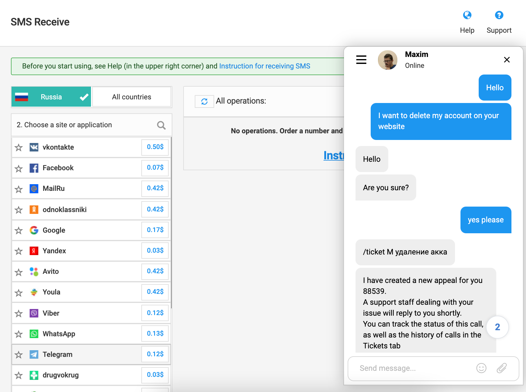 How to delete an account | Onlinesim